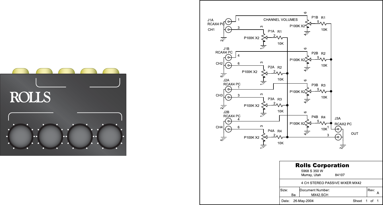 MX42. This unit is a stereo, four channel passive mixer for